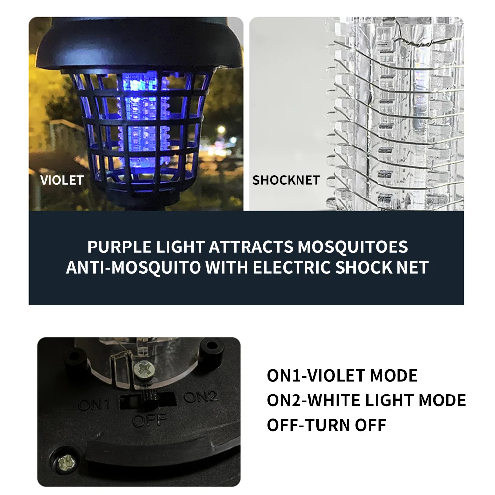 * Lighting & Anti-mosquito Dual-purpose Solar Lamp,just toggle the switch and turn on the desired mode.